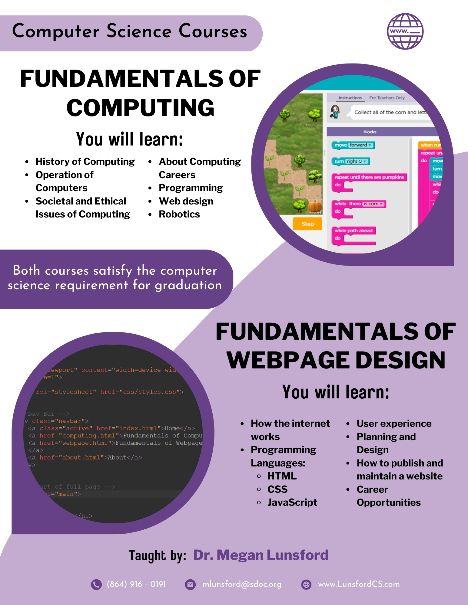 ) you will find information related to the courses I teach at WHS. This includes the standards, and order of the units that will be covered!
